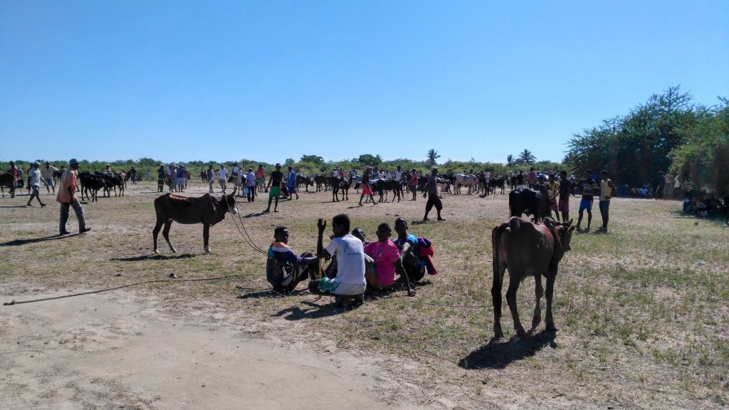 The country of Madagascar is so untouched, and non commercialized. It’s a wonderful and wild place. But you should be prepared that the roads are unpaved, most of them dirt (in the whole country!!). And there’s really only a few major roads that can get you east/west and north/south, so there’s a lot of driving to get from A to B. Madagascar may look small on a map, but it’s actually huge. Driving takes forever on dirt roads. We spent many many many of our two week trip in the car. So do with that info what you will! Bring ginger tablets. Always have snacks at the ready. And be ready to take blurry car photos of the sites. There are also very few buildings. There are a lot of shack-like, village-looking structures. They do a lot with little infrastructure. The photo above is a cow auction/market. You can see, they don’t have any buildings or specific designated area to hold this. It’s just in the open.